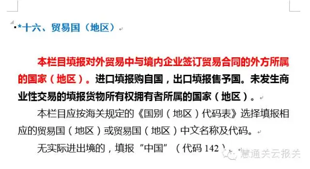 这个贸易国是新增的栏目,今天这个栏目不知道怎么填写的是最多的。 首先呢,看海关关于报关单新版填制规范的原文: