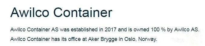 作为全资子公司,Awilco Containers AS的业务将连接Awilco Eco Tankers Holding AS, Awilco LNG ASA, Awilco Drilling and Awilco Technical Services AS。 |